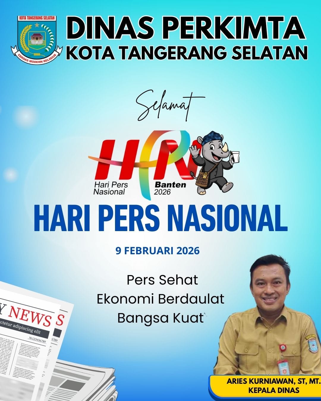 Dinas Perkimta Kota Tangerang Selatan Mengucapkan Hari Pers Nasional Tanggal 9 Februari di Banten Februari 9, 2026oleh redaksi-mkn-679 Dilihatoleh redaksi-mkn Post Views: 679 Jangan LewatkanDinas Lingkungan Hidup Kota Tangerang Selatan Mengucapkan Hari Pers Nasional 9 Februari 2026 di BantenKeluarga Besar SMP Negeri 15 Kota Tangerang Selatan Mengucapkan Selamat Hari Pers Nasional (HPN) 9 Februari 2026 di BantenSMKS PGRI 1 Balaraja Mengucapkan Selamat Hari Pers Nasional (HPN) Tanggal 9 Februari 2026 di BantenMAN 2 Kabupaten Tangerang Mengucapkan Hari Pers Nasional (HPN) Tanggal 9 Pebruari di BantenPolaris Indonesia Rampungkan Pembangunan SmashPadel BSD, Fasilitas Padel Berstandar Internasional di Jantung BSD