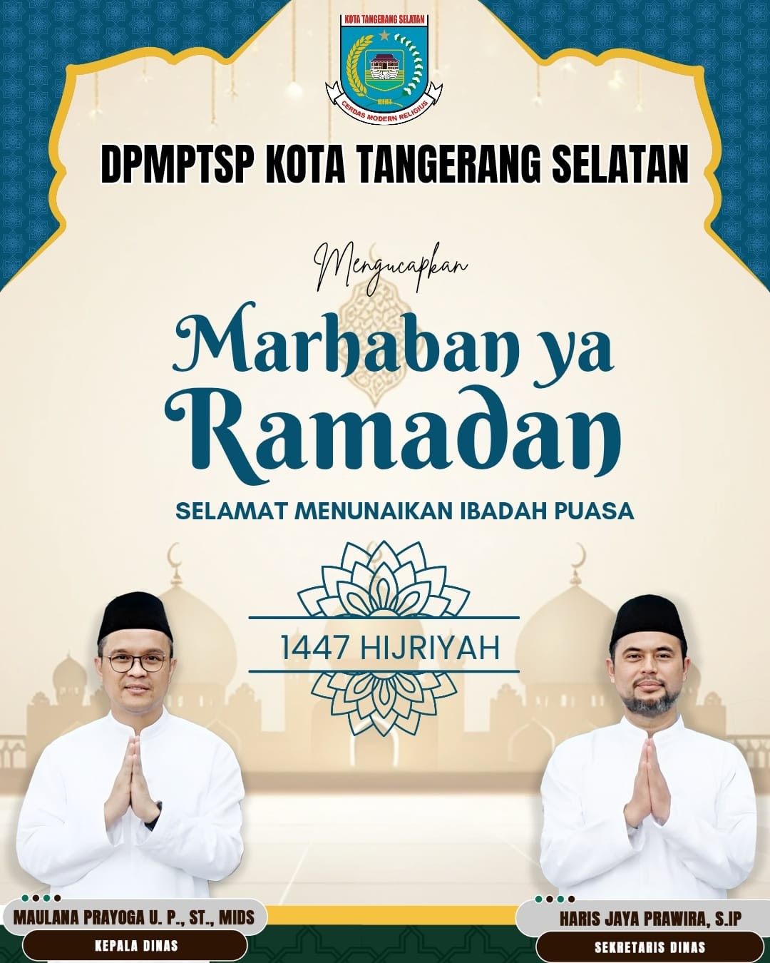 DPMPTSP Kota Tangerang Selatan Mengucapkan Marhaban Ya Ramadan Selamat Menunaikan Ibadah Puasa 1447 H Februari 18, 2026oleh redaksi-mkn-17 Dilihatoleh redaksi-mkn Post Views: 17 Jangan LewatkanDinas Kesehatan Kota Tangerang Selatan Mengucapkan Marhaban Ya Rammadhan 1447 H, Selamat Menjalankan Ibadah PuasaKetua Komisi II DPRD Tangsel Ricky Yuanda Bastian dari Fraksi PKS Mengucapkan Marhaban Ya Ramadhan 1447 HDinas Lingkungan Hidup Kota Tangerang Selatan Mengucapkan Hari Pers Nasional 9 Februari 2026 di BantenDinas Perkimta Kota Tangerang Selatan Mengucapkan Hari Pers Nasional Tanggal 9 Februari di BantenKeluarga Besar SMP Negeri 15 Kota Tangerang Selatan Mengucapkan Selamat Hari Pers Nasional (HPN) 9 Februari 2026 di Banten