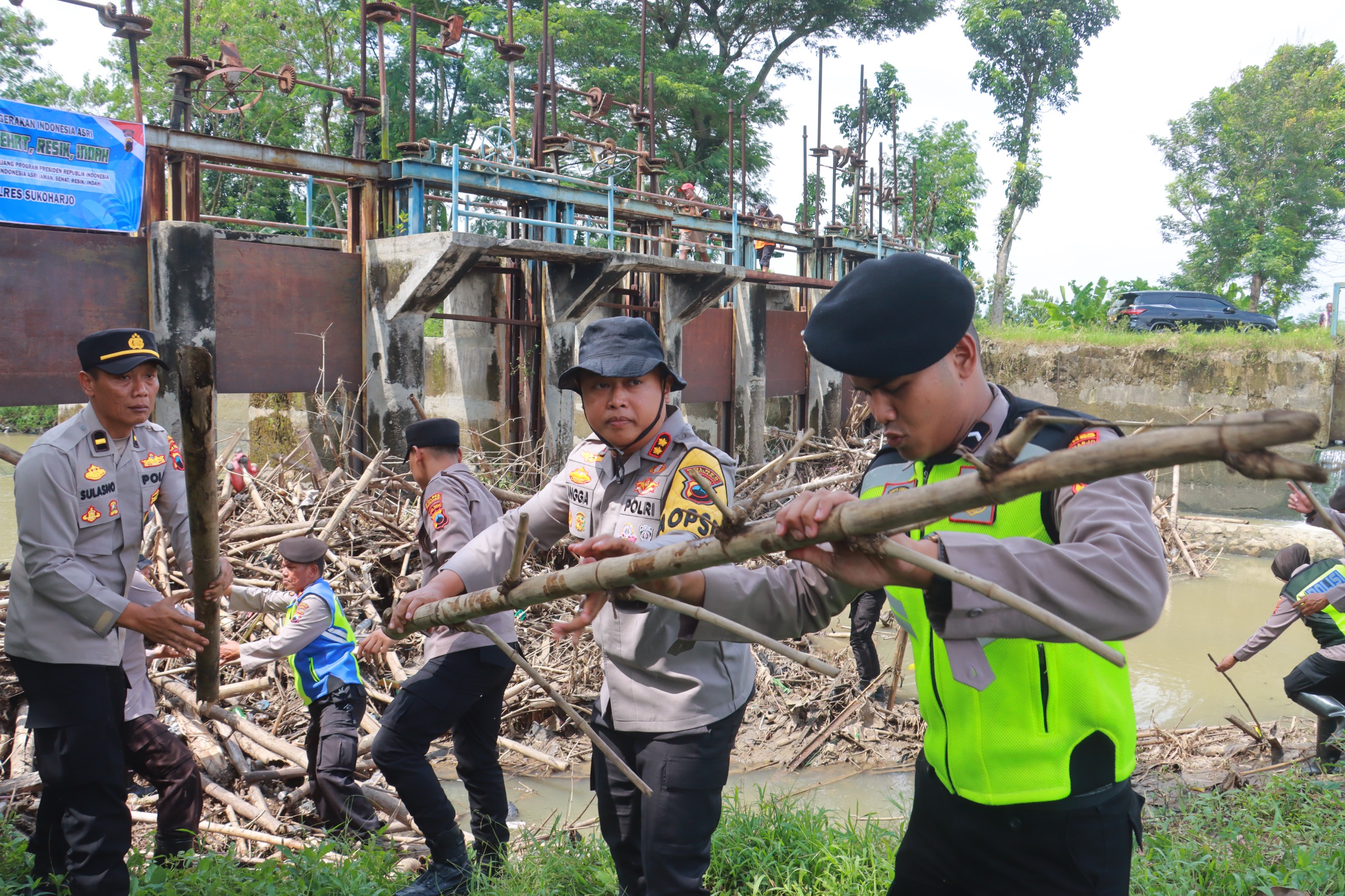 Kegiatan dipimpin langsung oleh Kapolres Sukoharjo AKBP Anggaito Hadi Prabowo, S.H., S.I.K., bersama sejumlah anggota. Mereka melaksanakan korve dengan membersihkan ranting-ranting dan sampah yang tersangkut di bawah bendungan agar aliran sungai dapat kembali mengalir lancar.