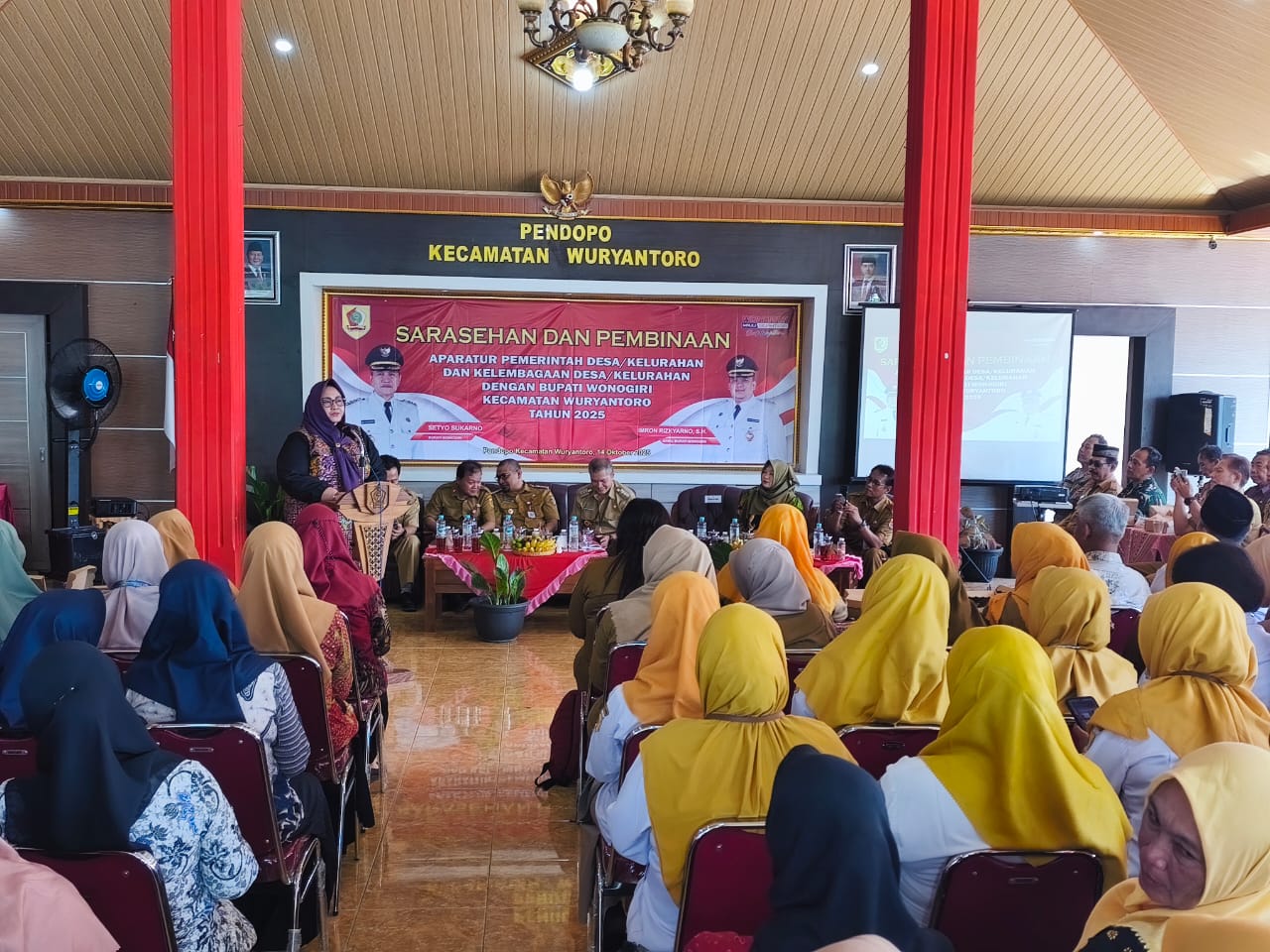 Wonogiri (MKNews)-Pemerintah Kecamatan Wuryantoro menggelar kegiatan Sarasehan Bersama Bupati Wonogiri. Acara yang digelar di Pendopo Kecamatan Wuryantoro ini dihadiri oleh Ketua Pembina Posyandu Kabupaten Wonogiri, Ibu Sri Rahayu Setyo Sukarno, Plt Kepala Dinas PMD Kabupaten Wonogiri, Plt Kepala Dinas PPKB dan P3A Kabupaten Wonogiri dan Plt Dinas Kesehatan Kabupaten Wonogiri dn dihadiri sekitar 240 orang peserta.
