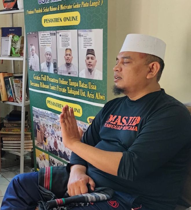 Bogor (MKNews)-Ustaz Muhammad Aris Alwi adalah sosok kharismatik yang dikaruniai kelebihan oleh Allah SWT. Aktivitasnya bukan hanya dakwah di perkotaan tetapi juga sampai pelosok-pelosok daerah. Melalui ilmu dan kharismanya dia juga banyak membantu sesama serta membimbing ribuan santrinya baik yang online maupun ofline.