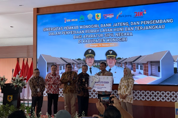 Wonogiri (MKNews)-Pemerintah Kabupaten Wonogiri menggelar Sosialisasi Penyediaan Rumah melalui Fasilitasi Likuiditas Pembiayaan Perumahan (FLPP) untuk ASN di Lingkungan Pemerintah Kabupaten Wonogiri. Kegiatan yang bekerja sama dengan Bank Jateng ini digelar di Pendopo Rumah Dinas Bupati, Kamis (16/10/2025).