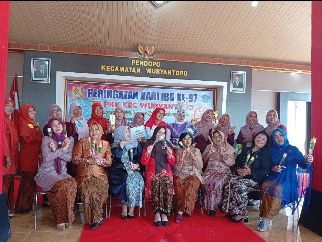 Wonogiri (MKNews)-Bertempat di Pendopo Kecamatan Wuryantoro, TP PKK Kecamatan Wuryantoro menggelar apel bersama dan berbagai lomba. Kegiatan tersebut digelar dalam rangka memperingati Hari Ibu ke-97 Tahun 2025. Hadir dalam kesempatan tersebut, Ketua 2 TP PKK Kabupaten Wonogiri Ayu Imron Rizkyarno, Ketua Dharma Wanita Kabupaten Wonogiri Argentin Pranata, Ketua TP PKK Kecamatan Wuryantoro Wenny Mahyasdewi Soemardjono Fadjari, Kepala Desa/Lurah se-Kecamatan Wuryantoro, Forkopimcam dan TP PKK Desa dan Kelurahan se Kecamatan Wuryantoro serta Dharma Wanita Persatuan Kecamatan Wuryantoro.