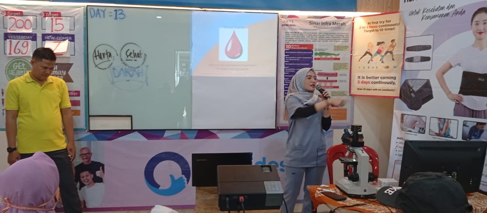 Seperti diketahui, Kru terapi sebanyak 4 orang yang dikomandoi oleh Predy Maulana tersebut terus memberikan edukasi kepada para peserta tentang pentingnya kesehatan. Setiap rombongan yang berjumlah puluhan orang yang kebanyakan ibu-bu, Predy terus cuap-cuap memaparkan alat terapai ini, dalam memudahkan kumunikasi dengan ibu-ibu agar cepat dimengerti, diselingi dengan candaan.