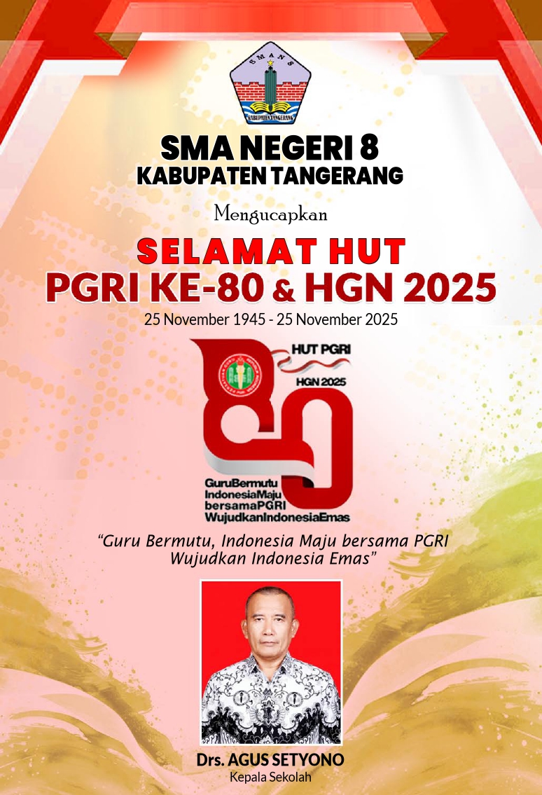 SMA Negeri 8 Kabupaten Tangerang Mengucapkan HUT PGRI dan Hari Guru Nasional Tahun 2025 November 23, 2025oleh redaksi-mkn-188 Dilihatoleh redaksi-mkn Post Views: 188 Jangan LewatkanDinas Lingkungan Hidup Kota Tangerang Selatan Ajak Masyarakat Terlibat Dalam Kelola SampahDinas PERKIMTA Mengucapkan Selamat HUT ke-17 Kota Tangerang Selatan pada 26 November 2025SMA Negeri 7 Tangsel Mengucapkan Selamat HUT ke-17 Kota Tangerang Selatan 26 Nopember 2025Camat Serpong Utura Mengucapkan Selamat HUT Kota Tangerang Selatan ke-17 Pada Tanggal 26 Nopember 2025SMP Negeri 11 Kota Tangerang Selatan Mengucapkan HUT ke-17 Kota Tangerang Selatan Pada Tanggal 26 Nopember 2025